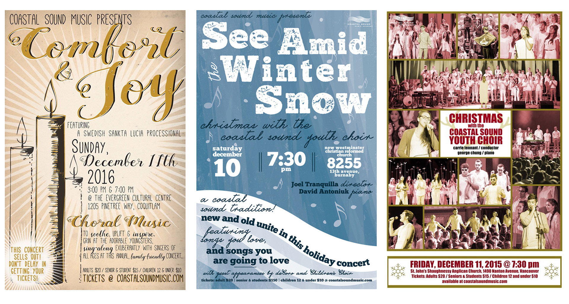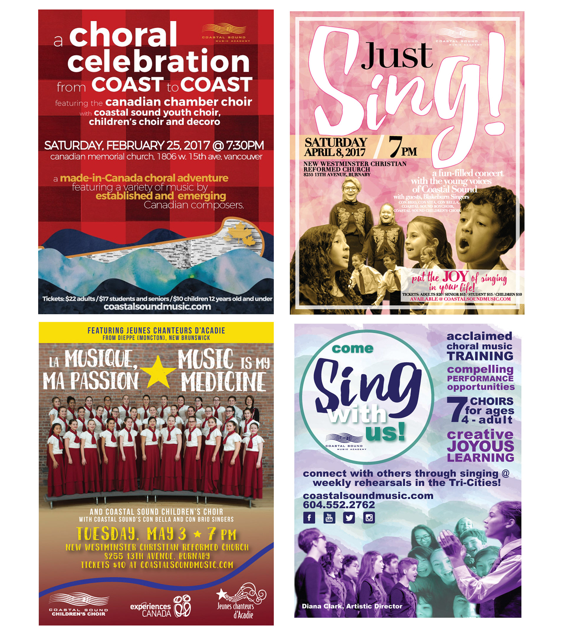 A series of show posters for a Coquitlam-based Non-Profit choral education organization.